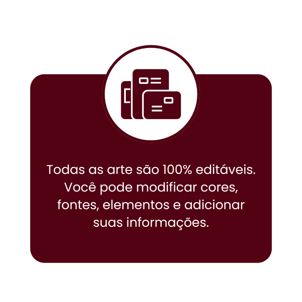 Os materiais são 100% editáveis, permitindo personalização de acordo com a sua necessidade.