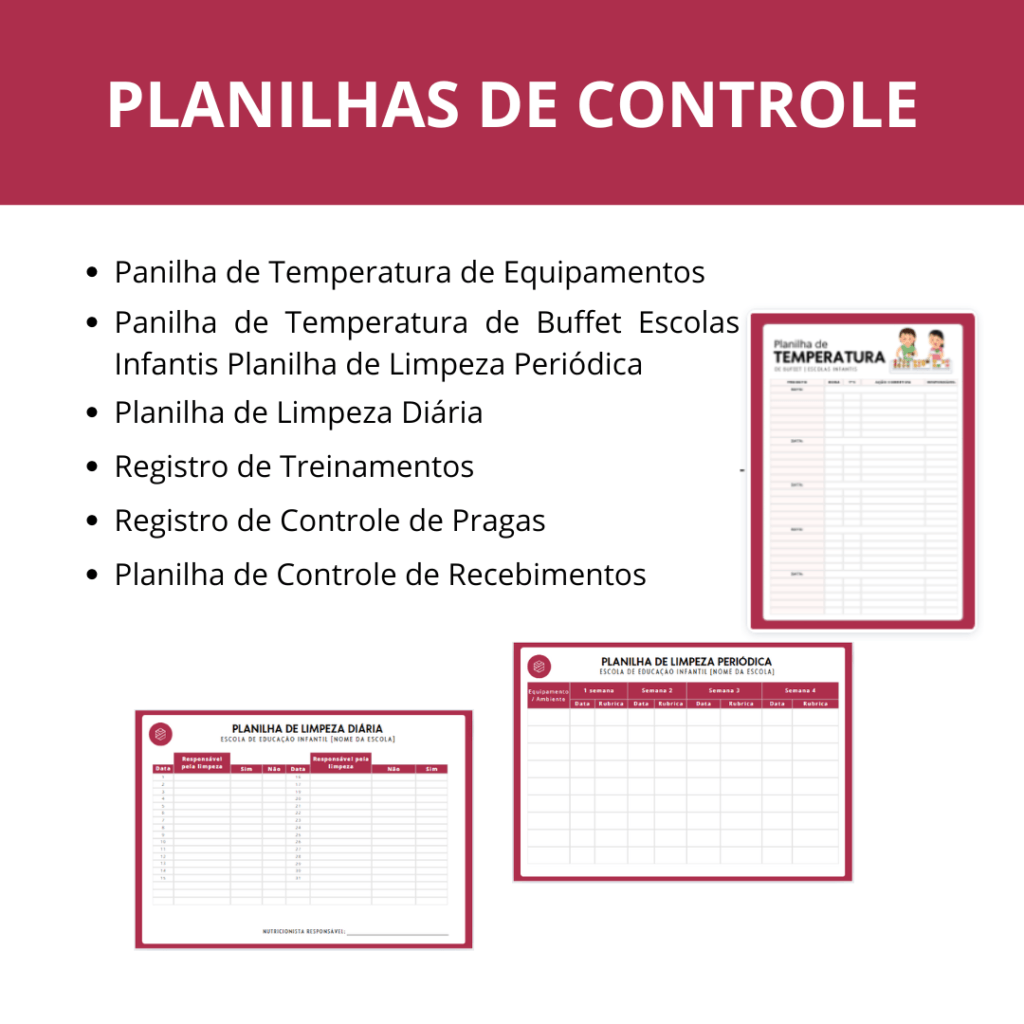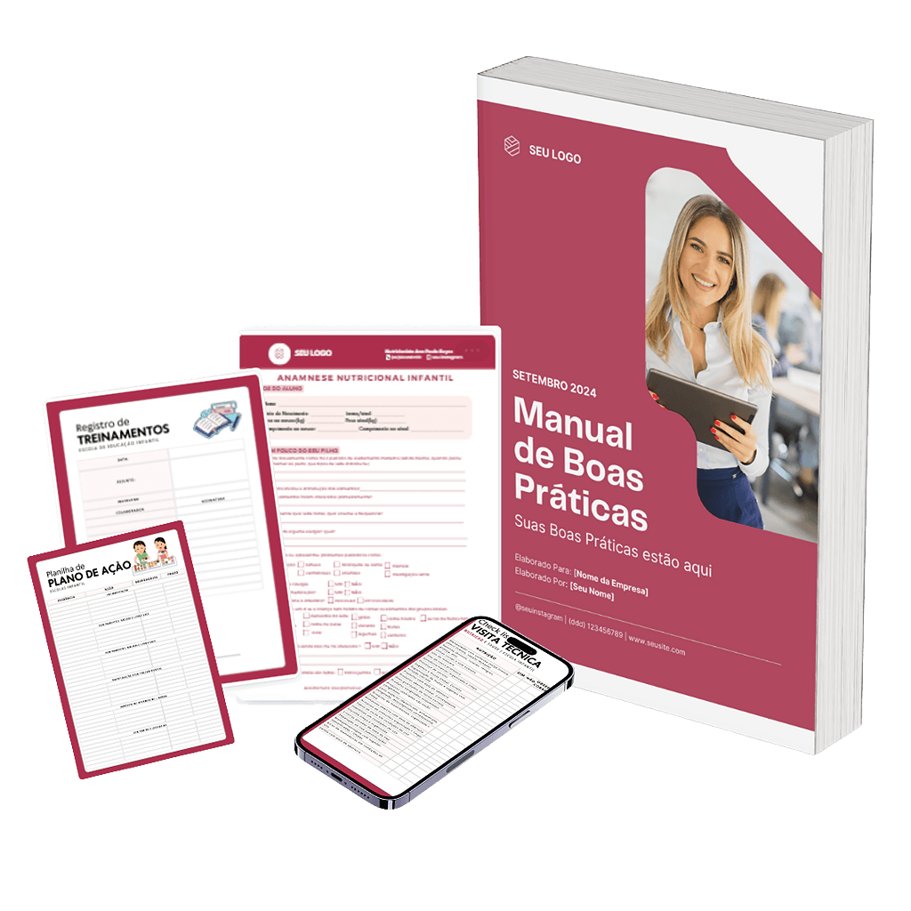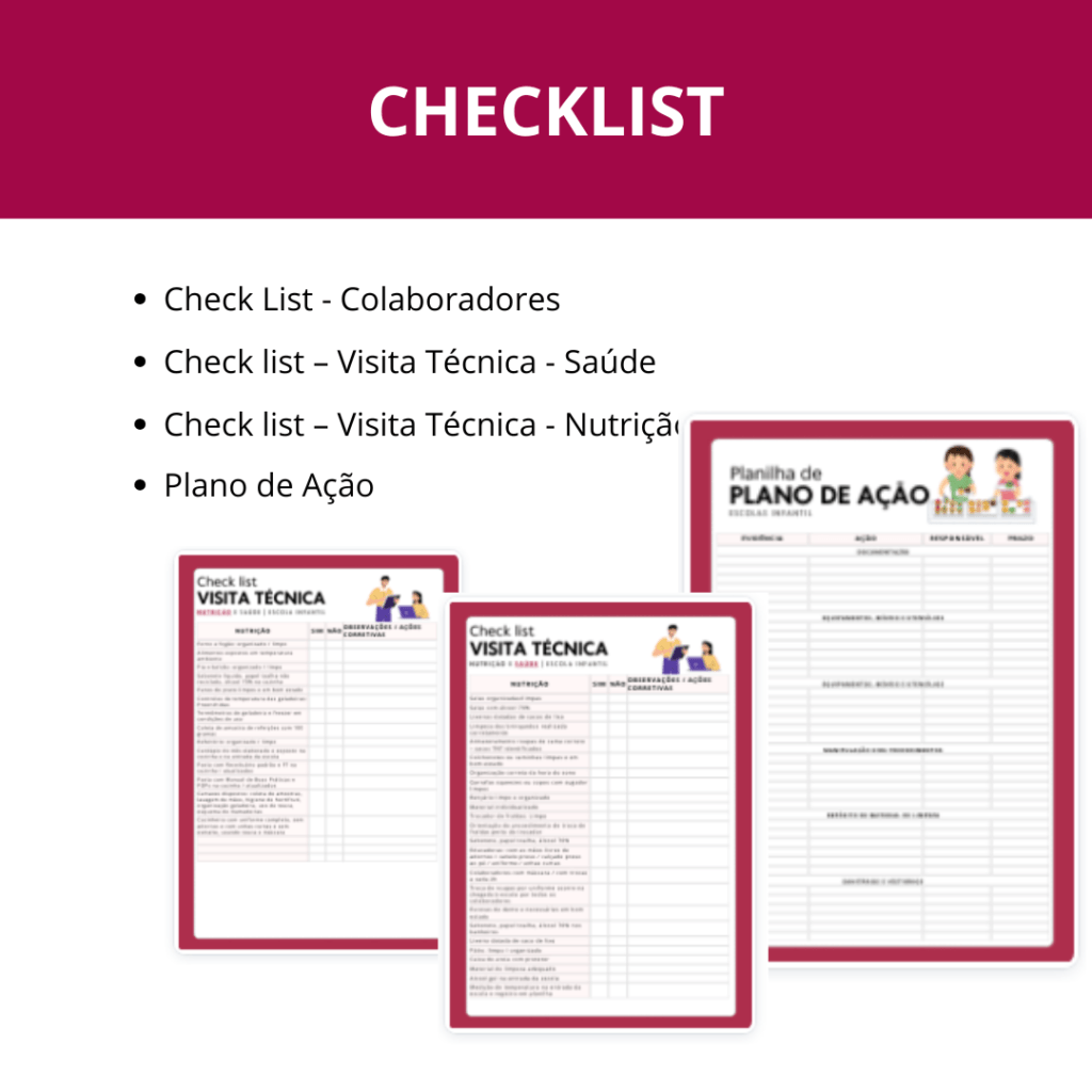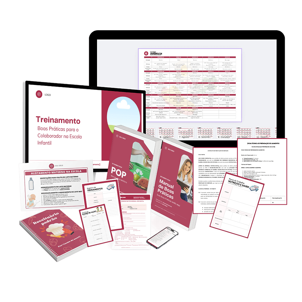 Muitos materiais como 12 modelos de cardápios, checklists, planilhas e atividades lúdicas para a educação infantil