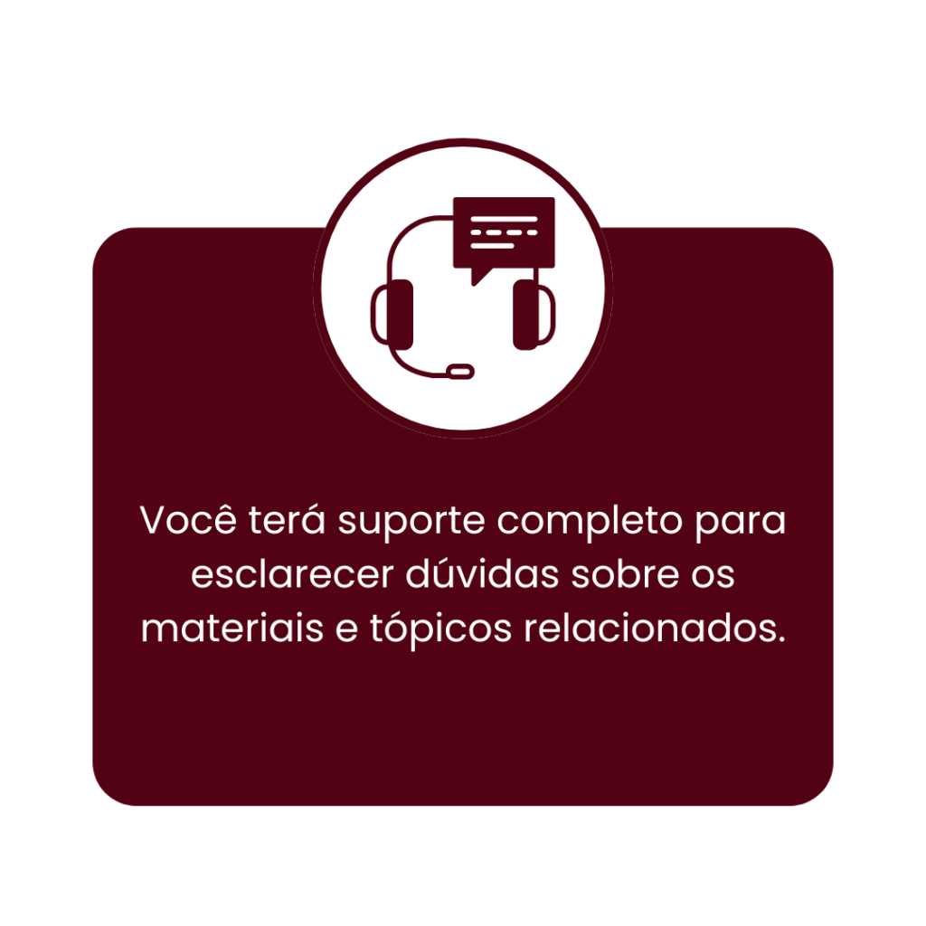 Você terá acesso ao material por 1 ano, com isto, estamos comprometidos em fornecer atualizações regulares do nosso material incorporando novas práticas e regulamentações à medida que surgem. Durante este periódo, você sempre terá acesso às informações mais recentes e relevantes em primeira mão.